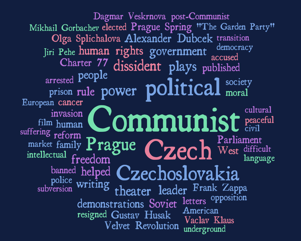It’s probably obvious that the first has to do with Kim Jong-il and the second with Vaclav Havel. While the North Korean dictator was reported to have died on Saturday and the Czech playwright-president passed away on Sunday, their obituaries happened to appear side by side on many newspaper websites on Monday. The two word clouds are the result of inputting those obituaries from the New York Times, Washington Post, and BBC on WordItOut, then removing redundant and non-distinctive words.