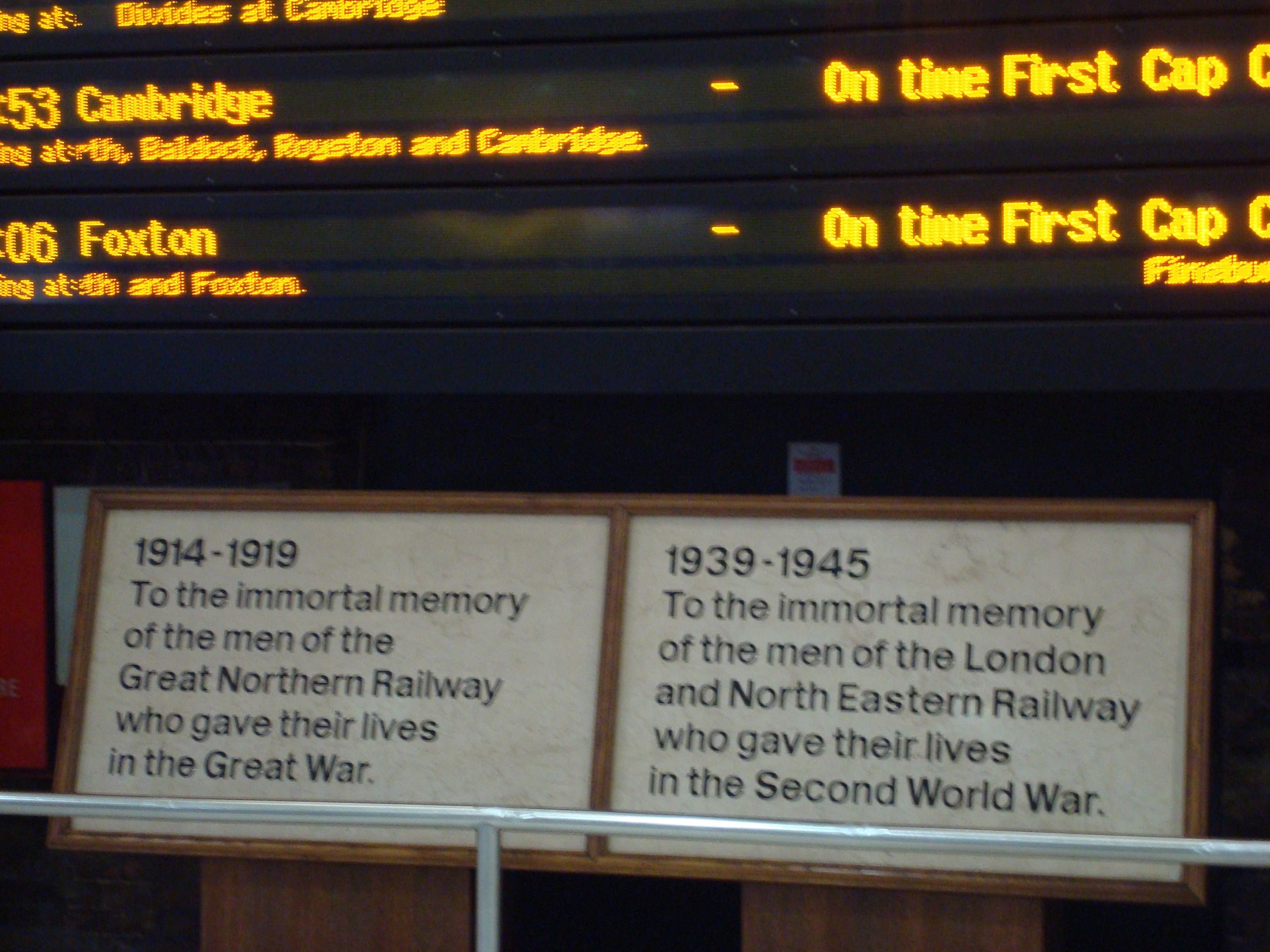 Cathedrals, churches, chapels, and synagogues have statues, reliefs, and plaques warning us never to forget what happened in 1914-1918. As do the colleges of Oxford and Cambridge. And the railway stations of London (see left). And markets and corporate headquarters.