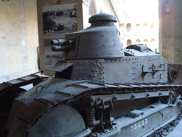 Then they’ll want to go inside, head upstairs, and visit the modern military history museum and its well-designed, extensive WWI and WWII exhibits. Much of it echoes the themes and style of the Imperial War Museum: an abundance of artifacts (note to English-speaking visitors: while there are English descriptions at various key points in each room, many items themselves have only French labels; it might be worth the euros to pick up an audio guide). My wife especially appreciated the clever use of film projectors and space, plus the interactive maps early in the WWI exhibit demonstrating the advances back and forth along the Western Front.