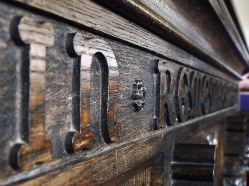 It’s New Testament wisdom, too. A few minutes after I ended this talk, we gathered for Communion, at a table etched with the familiar phrase that concludes this passage from Paul’s first letter to the Corinthians: