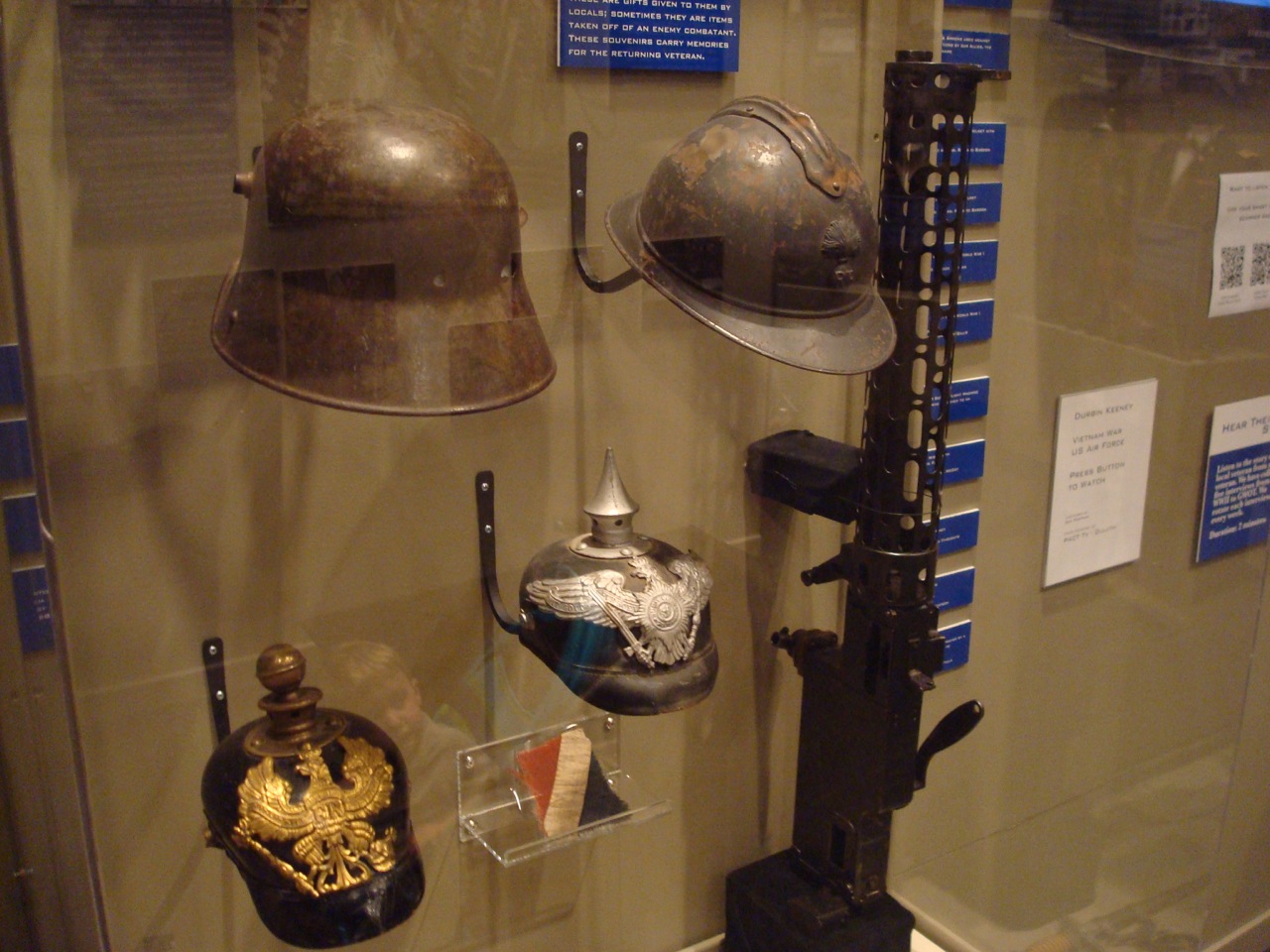 German and French helmets, and a light machine gun from a German airplane – Veterans’ Memorial Hall, Duluth, MN