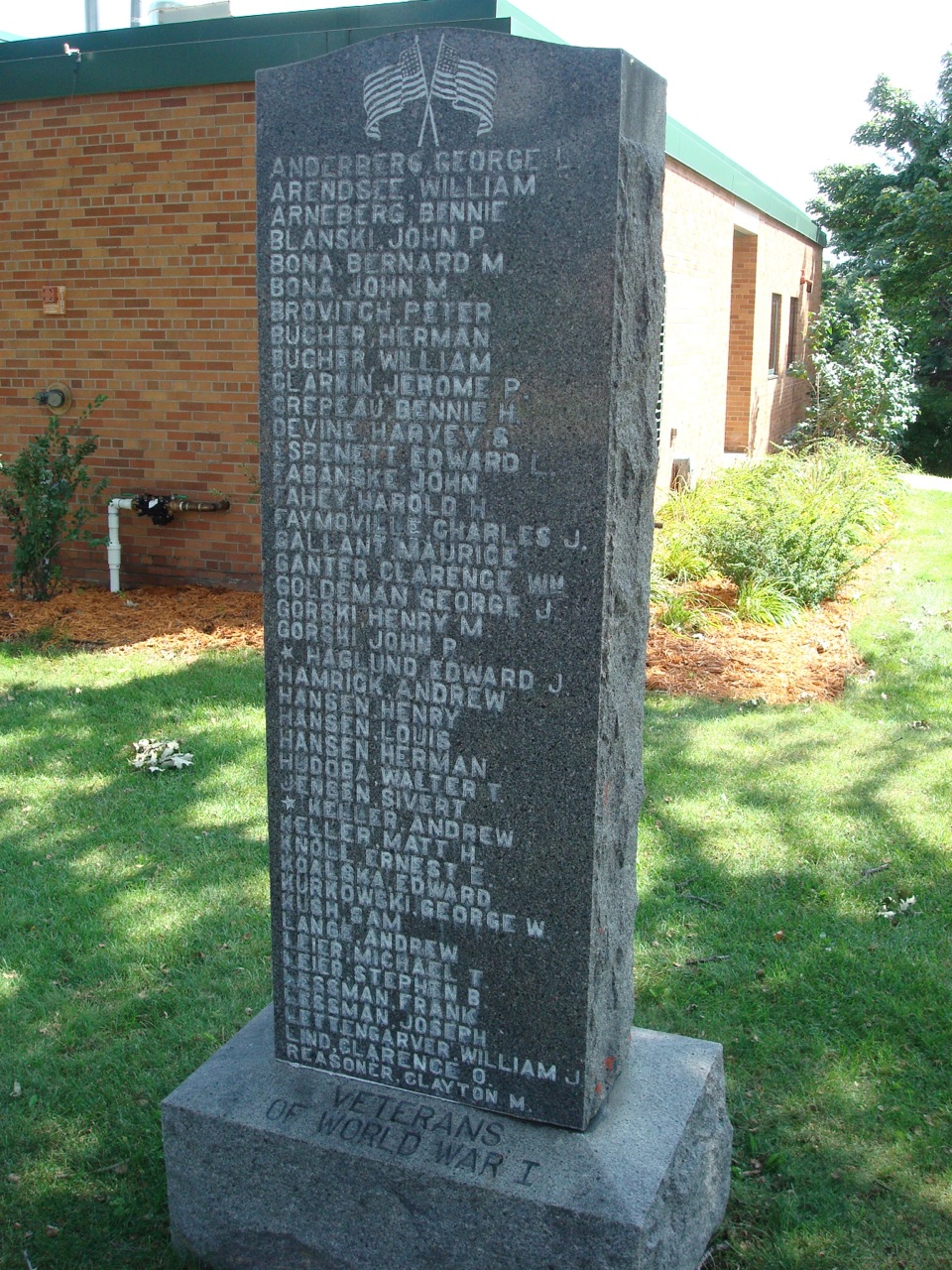 On the other side of New Brighton City Hall is Veterans Park, where one finds an American Legion-sponsored plaque (dedicated in 1990) that may be understood as commemorating WWI soldiers, but only implicitly and as part of a much larger group. It reads: