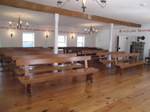 The Saal or meeting hall in the Gemeinhaus (community house) at Bethlehem, PA where men and women sat on opposite sides.