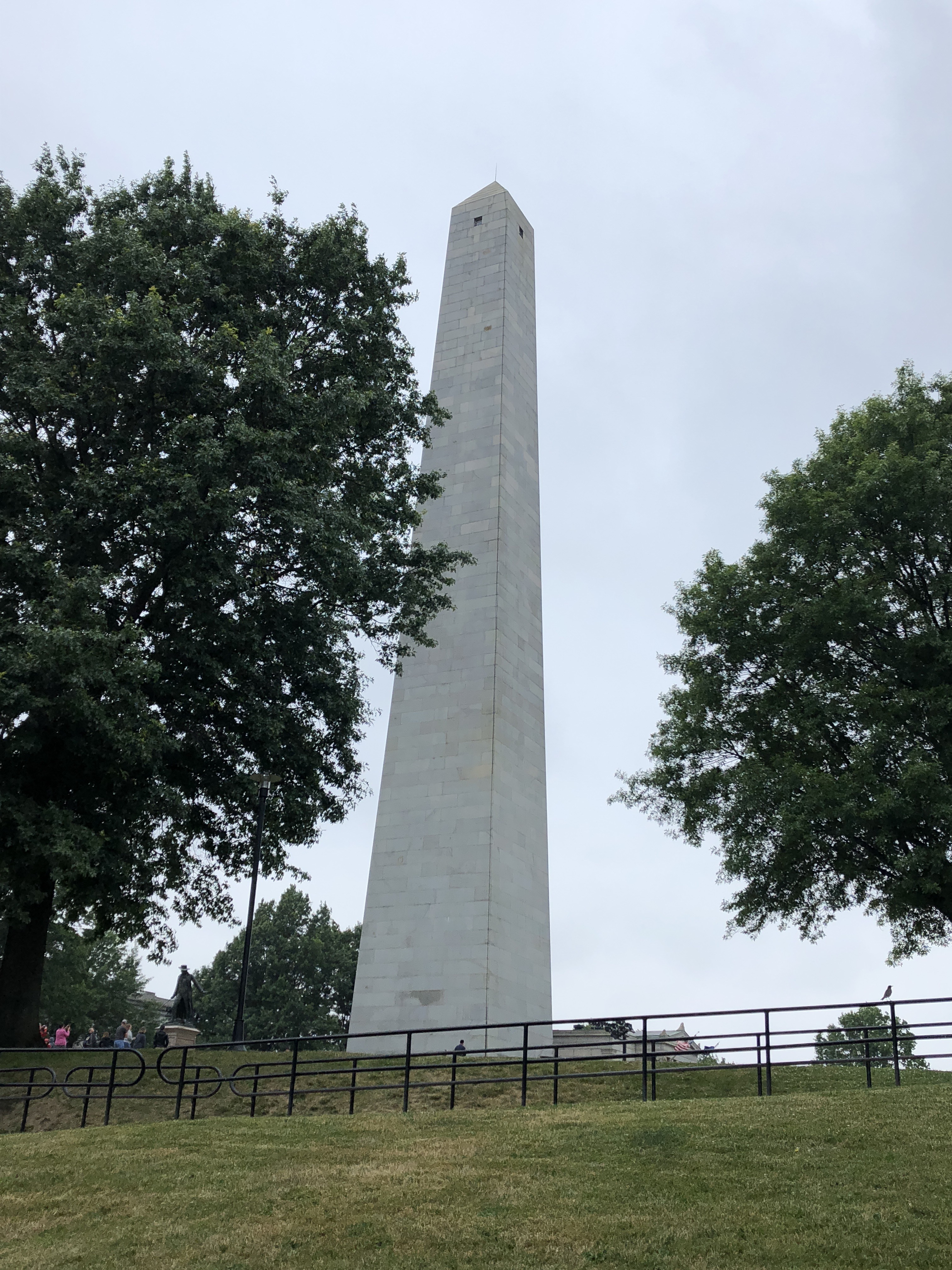 Given that I’m both a historian and a tourist, you won’t be surprised to learn that I walked the Freedom Trail. As you probably know, it starts with a memorial to the militia who fought the British at Bunker Hill. When they laid the cornerstone in 1825, on the 50th anniversary of the battle, the great senator and orator Daniel Webster insisted that it was our “sacred obligation” as Americans to honor the memory of those soldiers by preserving freedom.