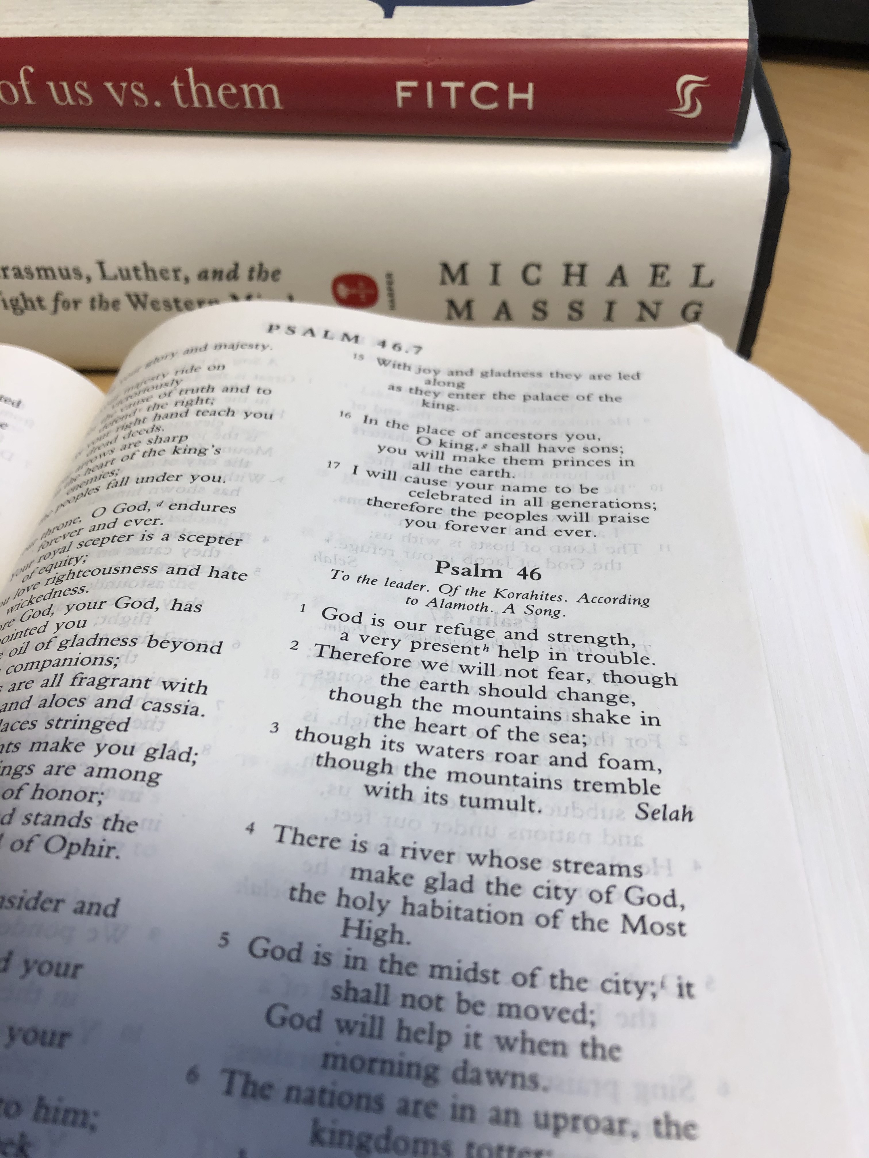 • We’ll start with worship at 9:30am, when I’ll preach on Psalm 46, the text that famously inspired Luther’s “A Mighty Fortress.” Much as I love the “battle hymn of the Reformation,” I’ve been thinking about the ways that it tempts us to misunderstand what it means that “God is our refuge and strength, a very present help in trouble.”