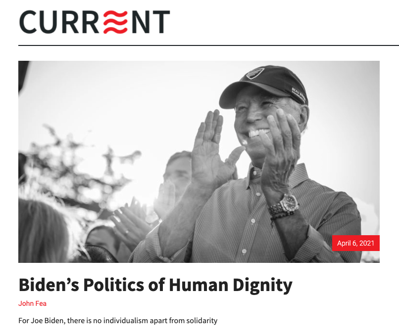 Much of the content at Current is not behind a paywall — including John’s first full essay this morning, on the centrality of human dignity to the politics of America’s second Catholic president — but if you share my excitement for this project, admiration for its leaders, and hope for its mission, I hope you’ll join me in supporting Current as a Patreon member: $5 per month adds news, announcements, and a special essay for patrons only; another five bucks a month adds on John’s new narrative history podcast, A History of Evangelicalism and Politics in America; and for $20 monthly, you also get to join a Zoom call with Current editors and writers every other month.